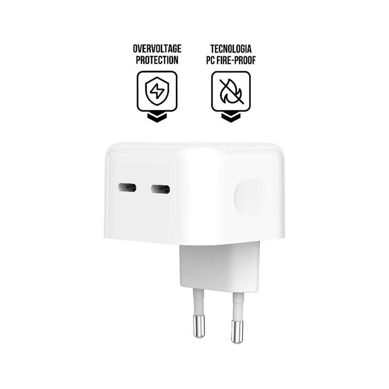 Com duas entradas Tipo C, o carregador permite carregar dois dispositivos simultaneamente, proporcionando uma solução conveniente para famílias ou profissionais em movimento. A tecnologia Turbo integrada garante uma carga rápida e eficiente, permitindo que você recarregue seus dispositivos até 3 vezes mais rápido do que os carregadores convencionais.