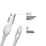 Além dos conectores Tipo C, o Cabo Thunder 2 em 1 também possui um adaptador integrado da porta USB padrão, garantindo compatibilidade com uma ampla gama de dispositivos.