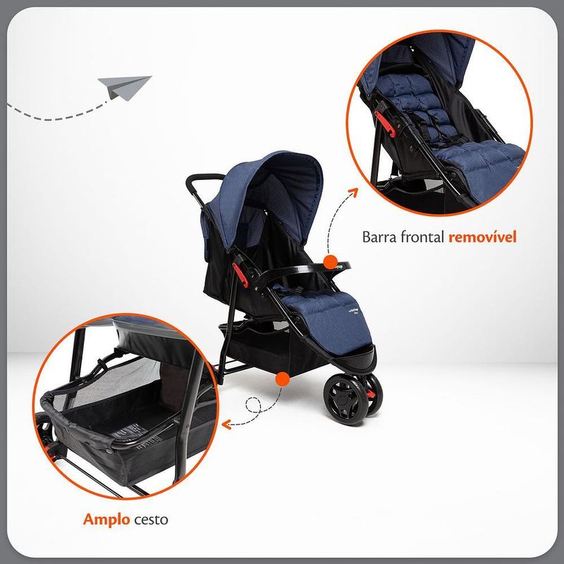 Design moderno e funcional: Carrinho com três rodas, ideal para passeios em qualquer terreno.