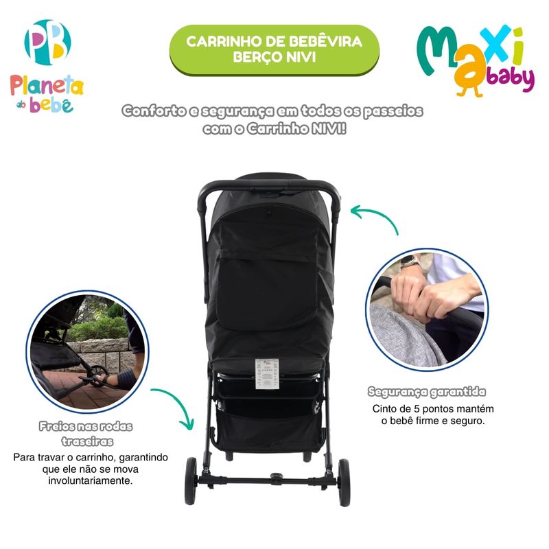 Ideal para crianças desde o nascimento até 15kgs. O carrinho NIVI da Maxi Baby é o aliado perfeito para os pais que procuram conforto, segurança para seus pequenos e praticidade no dia a dia!