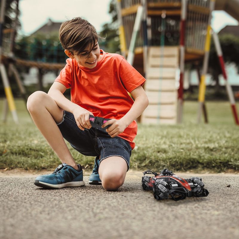 O motor super potente garante performance impressionante, subindo até 45° com facilidade. Com a função stunt 360°, você pode fazer giros completos e acrobacias incríveis. Basta adicionar água para ativar o efeito de fumaça no escapamento, deixando a experiência ainda mais realista.