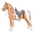 Comece uma debandada de estilo com este cavalo de brinquedo de 50cm! As crianças que adoram brincar com penteados, também podem brincar com a sua crina estilosa. O cavalo Palomino da Our Generation tem o tamanho perfeito para suas bonecas de 46cm e vem com muitos acessórios para horas de diversão.