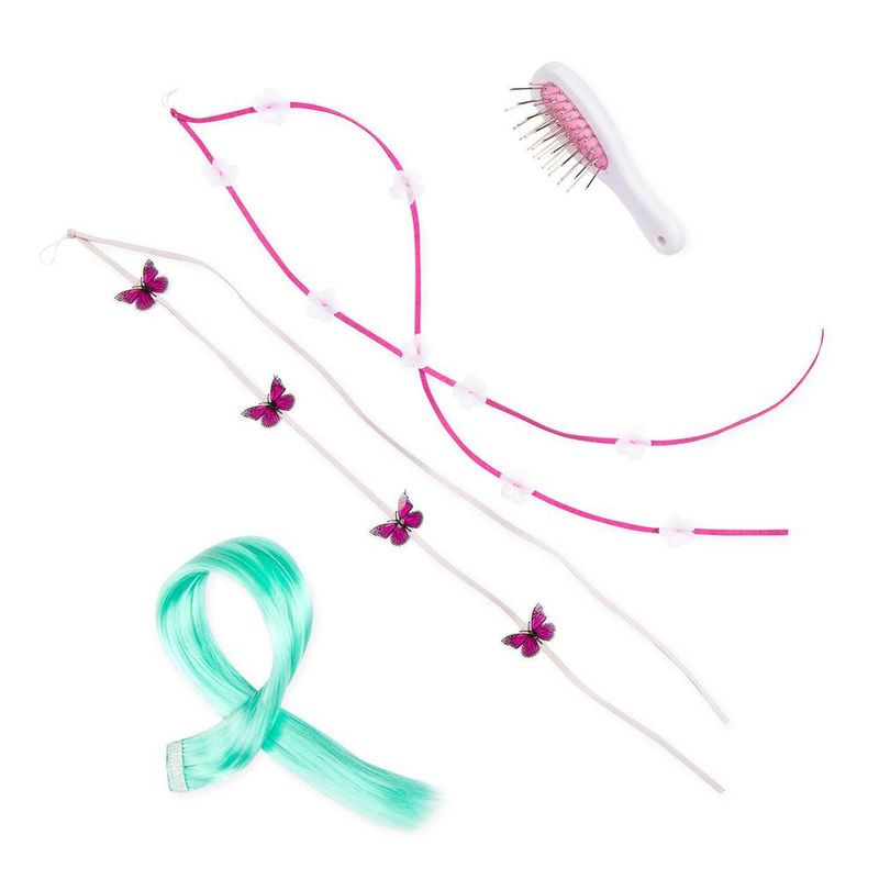 Ele tem uma longa e sedosa crina e cauda loira que são perfeitas para escovar e pentear. A escova de ponta arredondada incluída facilita manter o pelo longo do cavalo livre de emaranhados. Adicione uma das extensões de cabelo para um toque de cor aos seus estilos, ou use as fitas de cabelo de borboleta ou flor para dar um toque único ao estilo do seu cavalo. Essas extensões e fitas também podem ser usadas no cabelo das crianças também! Boneca vendida separadamente.