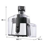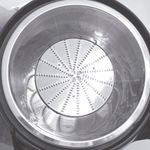 Pilão e bocal extragrande processam as frutas inteiras sem precisar descascar e o filtro em aço separa o suco das sementes e do bagaço.