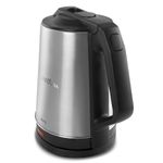 Chaleira Elétrica Britânia BCH12I é ideal para aquecer até 1,9 litros de água em poucos minutos, ideal para chá, chimarrão, carrão instantâneo, aquecer mamadeiras e muito mais. O desligamento é automático, desliga quando a água inicia a fervura com baixo consumo de energia. Aágua ferve rapidamente com apenas um toque. A Jarra com movimento rotativo 360° facilita o manuseio e transporte. Base destacável com porta-fio, maior mobilidade para preparar suas bebidas. Acabamento em aço Inox garantindo elegância na sua cozinha. O visor de nível interno indica o nível mínimo e máximo de água. O pegador é ergonômico com toque frio e abertura da tampa com acionamento por botão, muito mais fácil e seguro na hora de utilizar. • Capacidade de 1,9 litro; • Desligamento automático após iniciar a fervura; • Jarra em aço inox; • Pode-se girar a jarra 360° sobre a base; • Jarra removível, liberdade durante o uso; • Botão para abertura da tampa; • Base com local para armazenamento do cordão elétrico; • Dispositivo de segurança contra superaquecimento; • Luz indicadora de funcionamento; • Composição: metal e plástico.