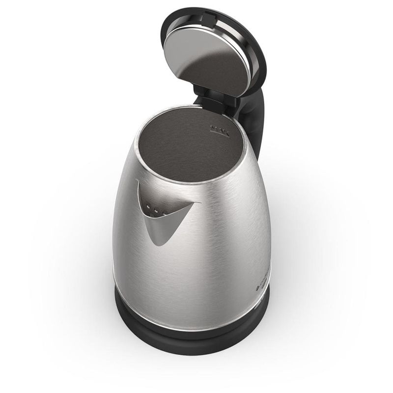 A tampa da chaleira possui um prático puxador para facilitar a abertura e fechamento. Para maior segurança, nunca utilize o produto com a tampa aberta, evitando riscos de acidentes com respingos de água fervente e vapor excessivo.