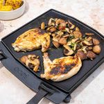 A placa de ferro fundido Ooni se encaixa dentro de todos os nossos fornos de pizza, para que você possa ir além da pizza assada na pedra para fazer uma variedade de pratos assados na chama dos fornos Ooni.