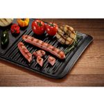 É uma peça super versátil, pois pode ser utilizada em fogões a gás, elétrico, de indução, fornos a gás e elétrico e churrasqueiras. A Chapa Grill Electrolux também conta com duas possibilidades de finalização dos alimentos na mesma peça: lisa e estriada. As estrias, além de proporcionarem o aspecto grelhado, permitem que a gordura escorra e fique armazenada nas canaletas das bordas, garantindo uma alimentação mais saudável!