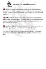 -Pressão de trabalho do queimador: GLP botijão 2,8 Kpa - GLP encanado 2,5 Kpa - GN encanado 1,25 Kpa;