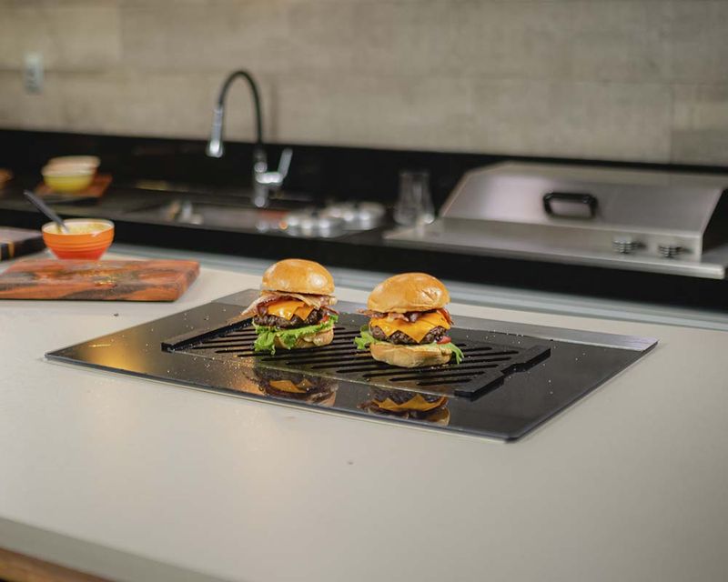 - Aço inox 304 : Acabamento tampo e bandeja coletora de gordura;