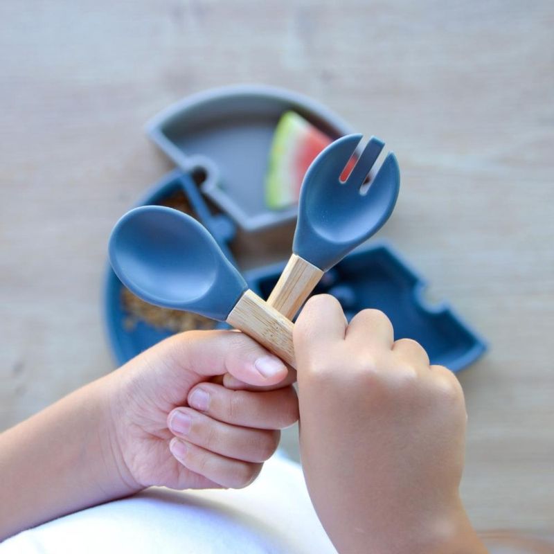 Colher e Garfo de Silicone e Bambu Dig In - Minikoioi