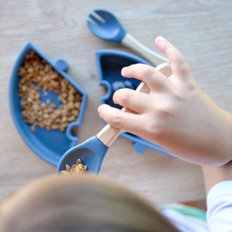 Colher e Garfo Silicone e Bambu Dig In Deep Blue - Minikoioi