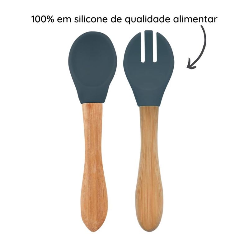 01 Colher e Garfo Silicone e Bambu Dig In Deep Blue - Minikoioi