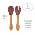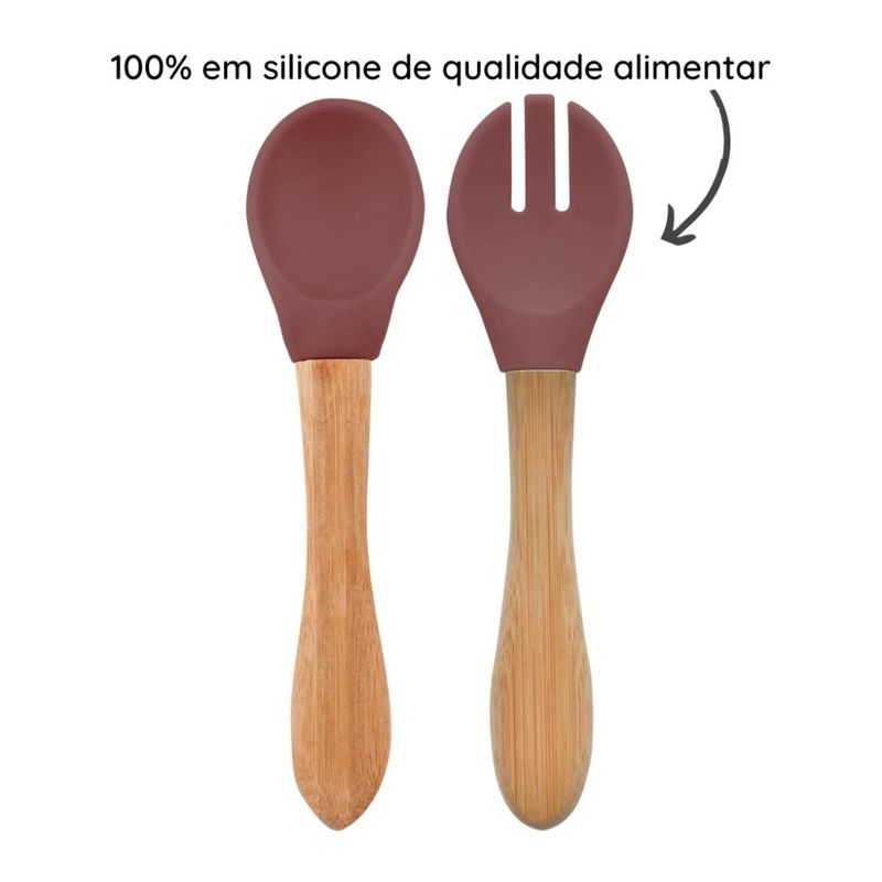 01 Colher e Garfo Silicone e Bambu Dig In Velvet Rose - Minikoioi