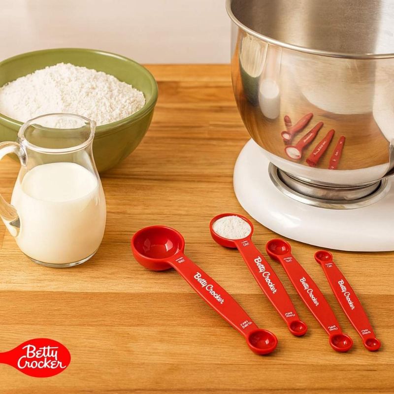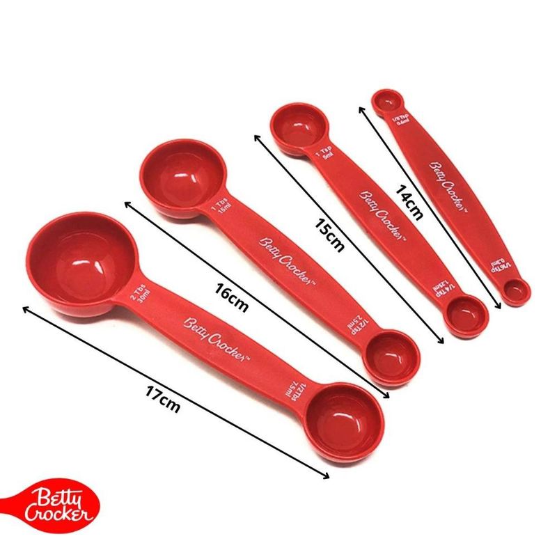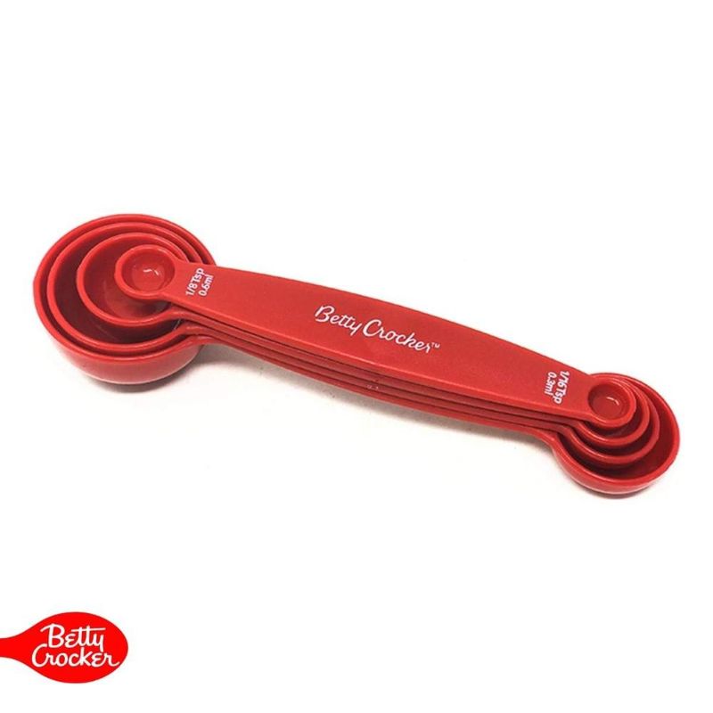 Tenha sempre precisão e praticidade no preparo das suas receitas com o Jogo de Colheres Medidoras com Ponta Dupla Betty Crocker.