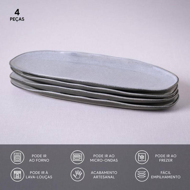 01 Conjunto com 4 Travessas Oval Rasa Grande Orgânico Dust 36x13cm