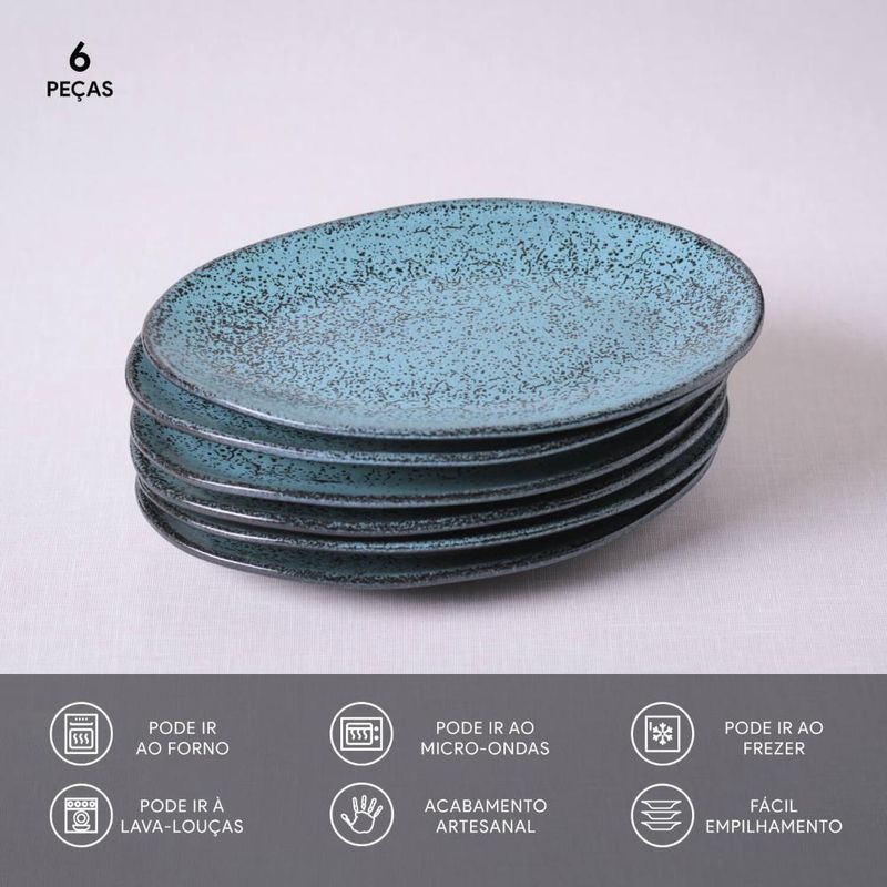 Utensílios DomésticosMesaAparelhos de JantarConjunto com 6 Pratos de Sobremesa Oval Orgânico Night Sky 22,5x16,5x2,5cm