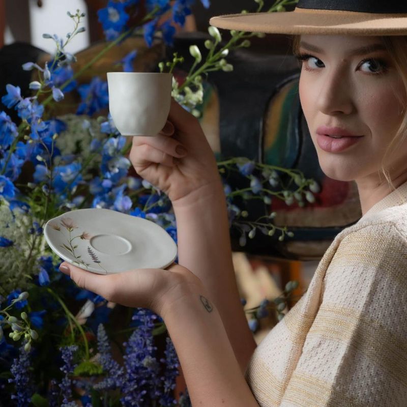 01 Conjunto com 6 Xícaras de Café com Pires Orgânico Lavanda 120ml