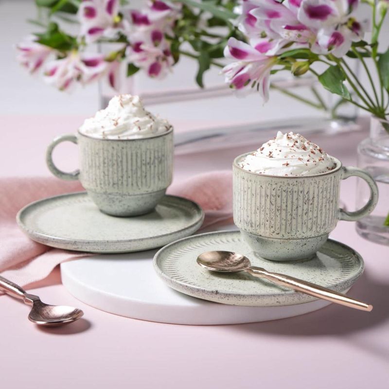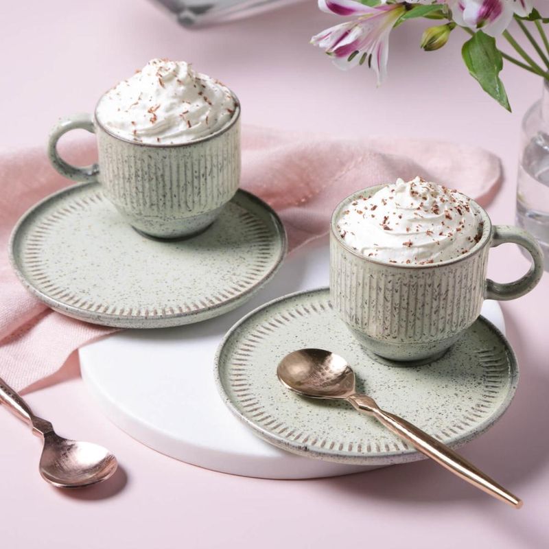 Conjunto com 6 Xícaras de Chá Empilhável com 6 Pires Linhas Pistache 230ml