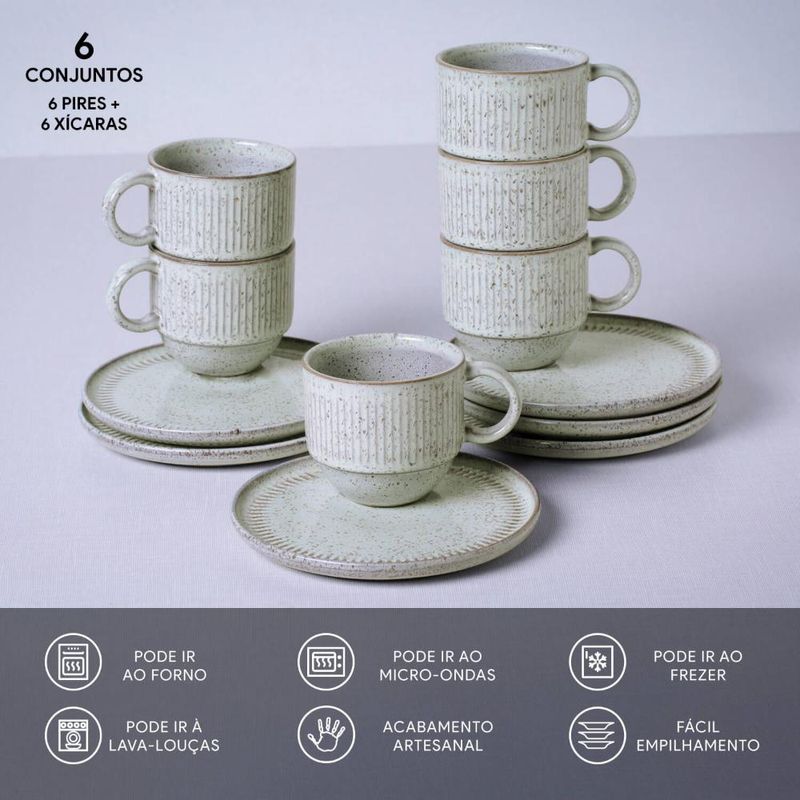 Utensílios DomésticosMesaConjunto de XícarasConjunto com 6 Xícaras de Chá Empilhável com 6 Pires Linhas Pistache 230ml