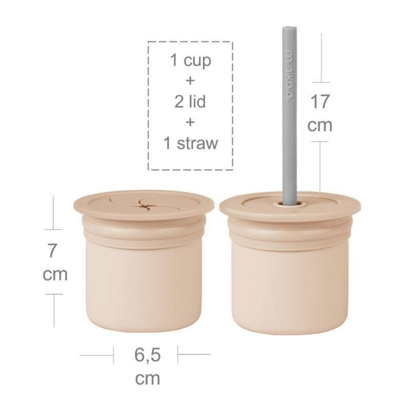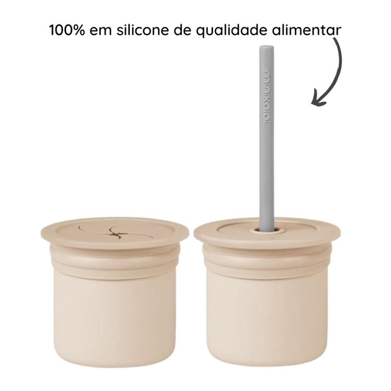 Conjunto Copo com Canudo + Tampa Snack Beige e Grey - Minikoioi