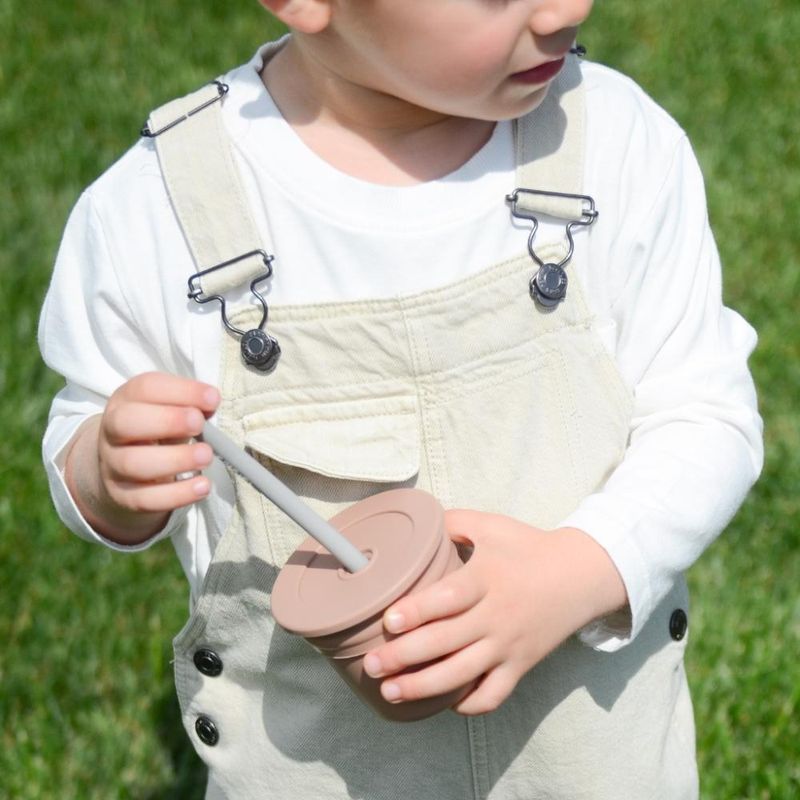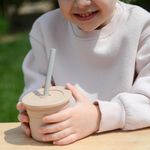 01 Conjunto Copo com Canudo + Tampa Snack Beige e Grey - Minikoioi