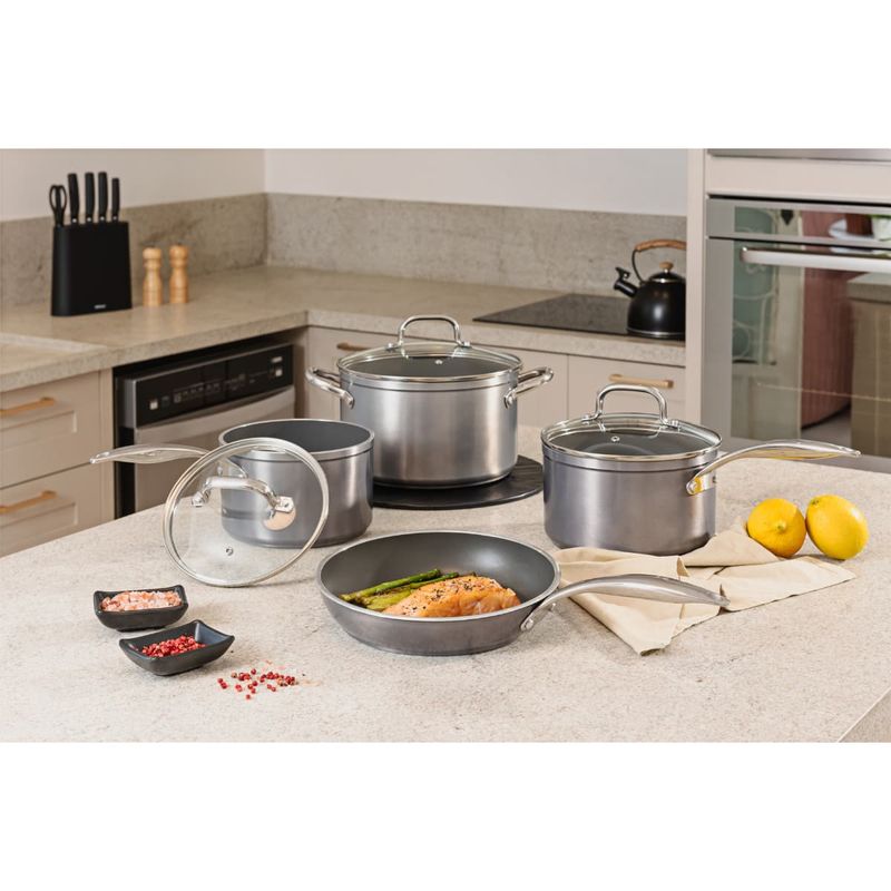 Suas receitas atingem a excelência e exatidão com o Jogo de Panelas Brinox Antiaderente Ceramic Life 4 Peças Unique com Indução Cinza. Surpreenda seus convidados!