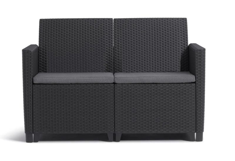 Certificação TÜV. Conjunto de mobiliário ideal para exteriores: jardins, terraços, varandas e alpendres. Encosto ergonômico. Durável, resistente às intempéries e aos raios UV. Fácil montagem. Disponível na cor grafite.