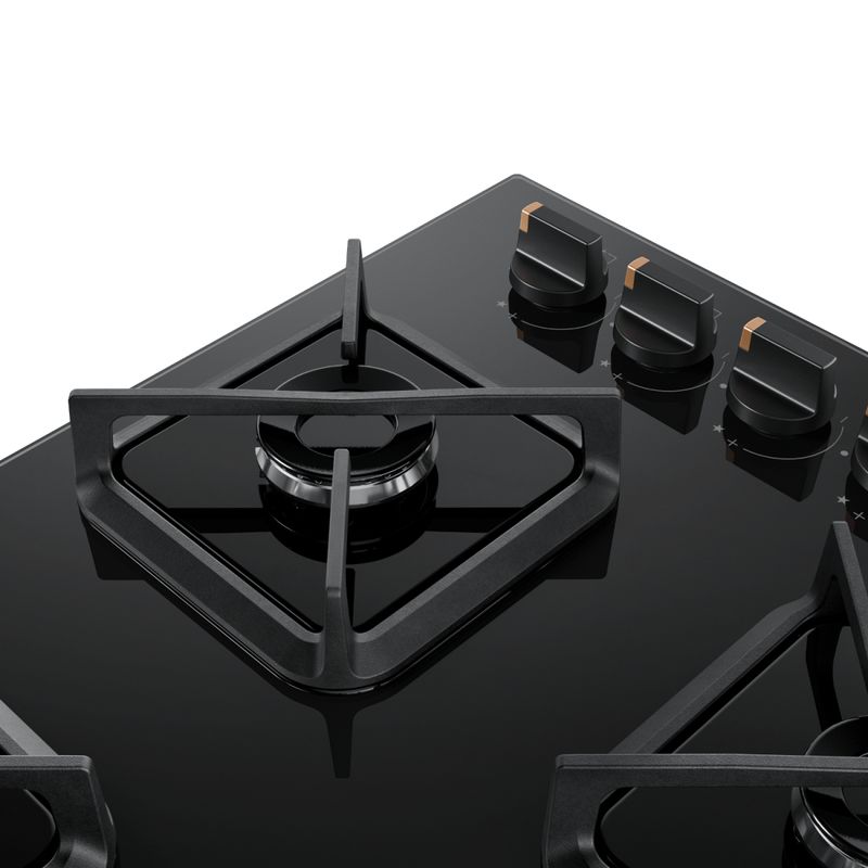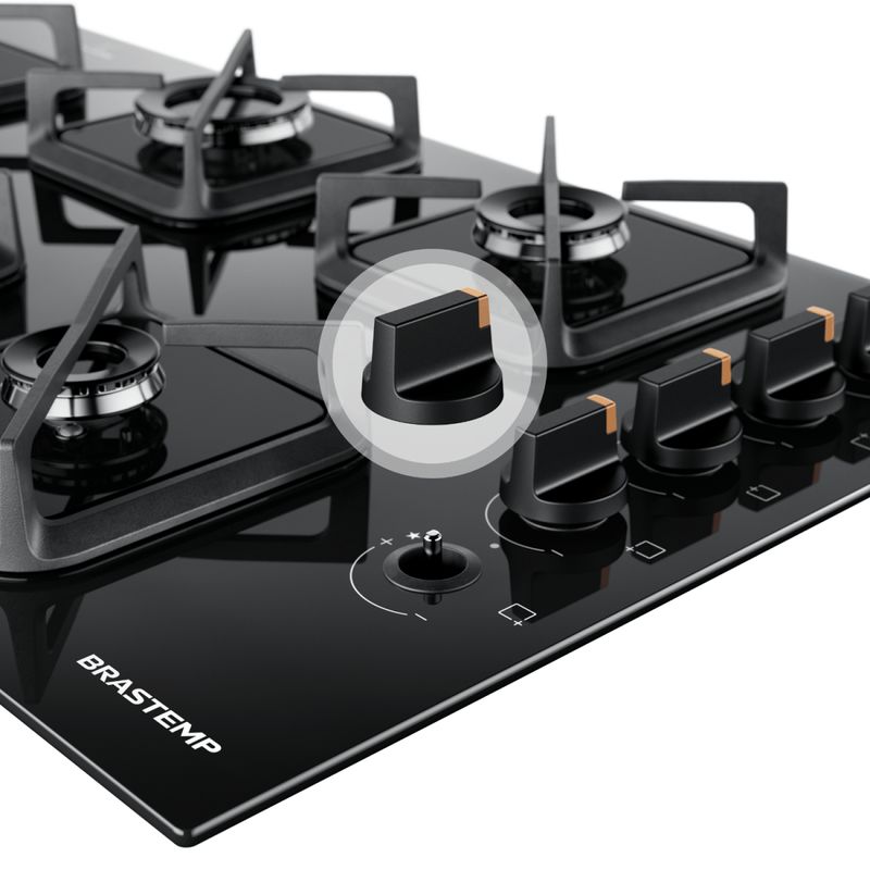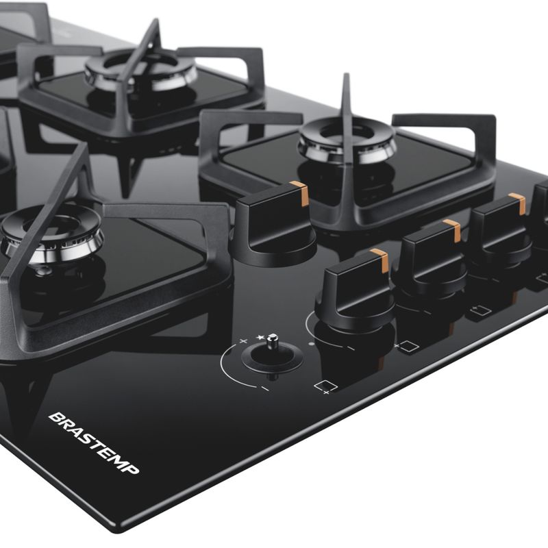 Cooktop Brastemp 5 bocas a gás, com grades de ferro fundido, super chama e acabamento premium. Confira!