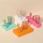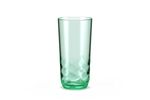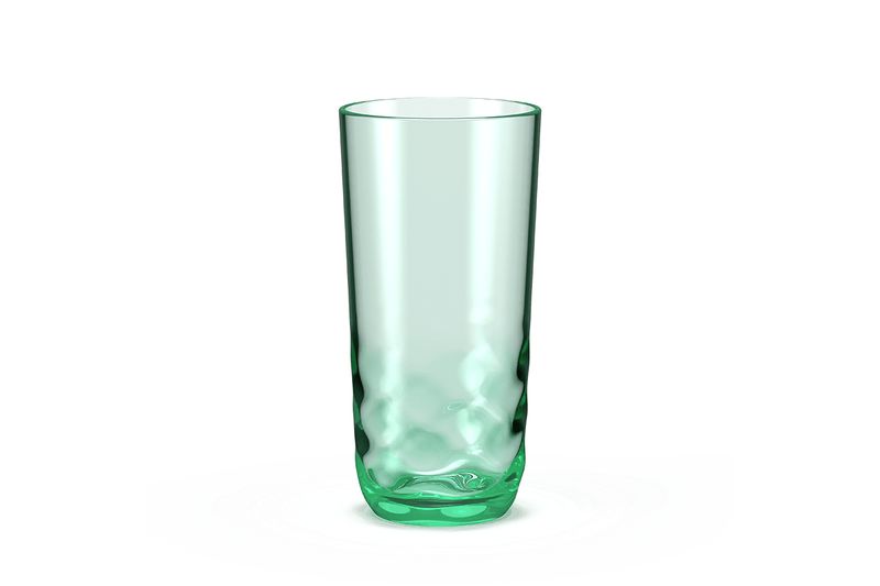 Fabricado em plástico transparente com acabamento brilhoso, possui textura ondulada ao seu redor. O copo é na cor Verde Soft, que traz, ao mesmo tempo, sofisticação e um colorido especial à mesa posta.