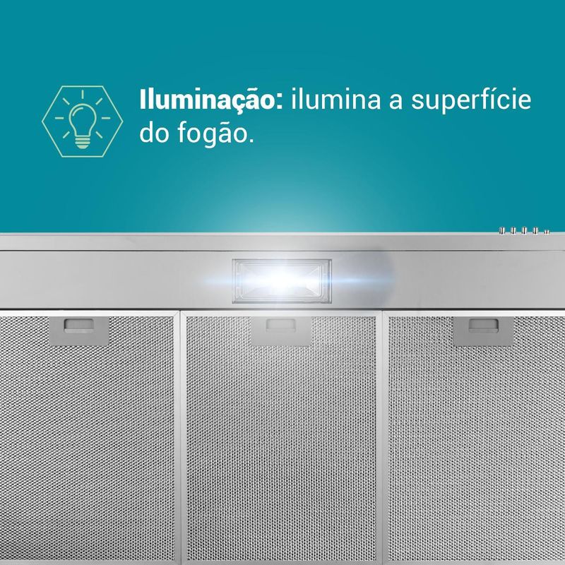 O Depurador e Exaustor Inox Philco 3 Velocidades 150W Possui lâmpada incandescente, prática para iluminar a superfície do fogão, além de trazer sofisticação ao seu ambiente.