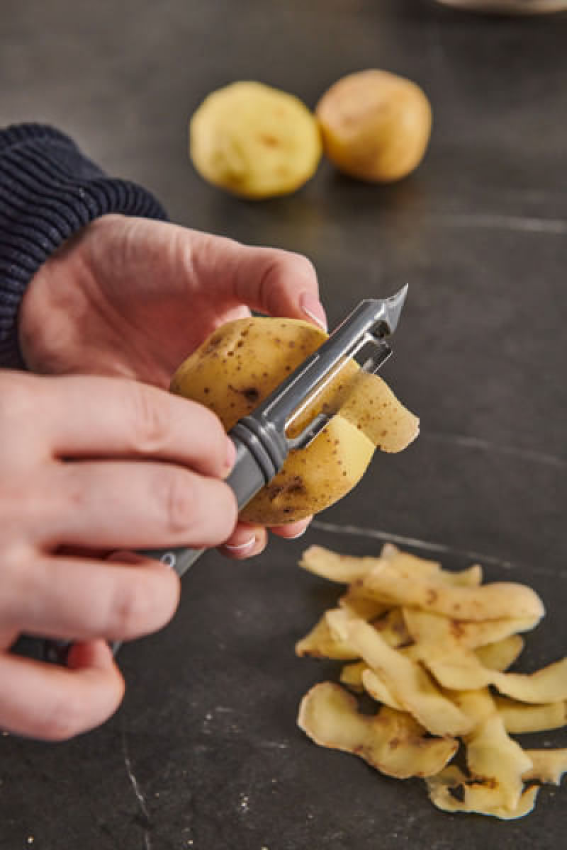 • Lâmina afiada em aço inoxidável que garante descascados precisos em frutas e legumes