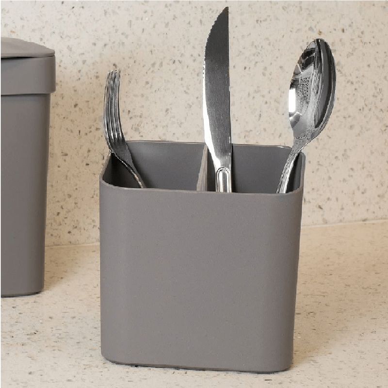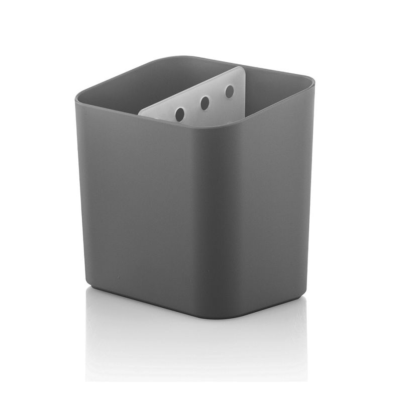 O escorredor possui reservatório interno evitando que a água escorra sobre a pia. Além de divisória interna ser removível, não deixando os itens armazenados terem contato com a água. Fabricado em material resistente e flexível (Polipropileno), além do plástico ser texturizado reduzindo riscos e facilitando a higiene.