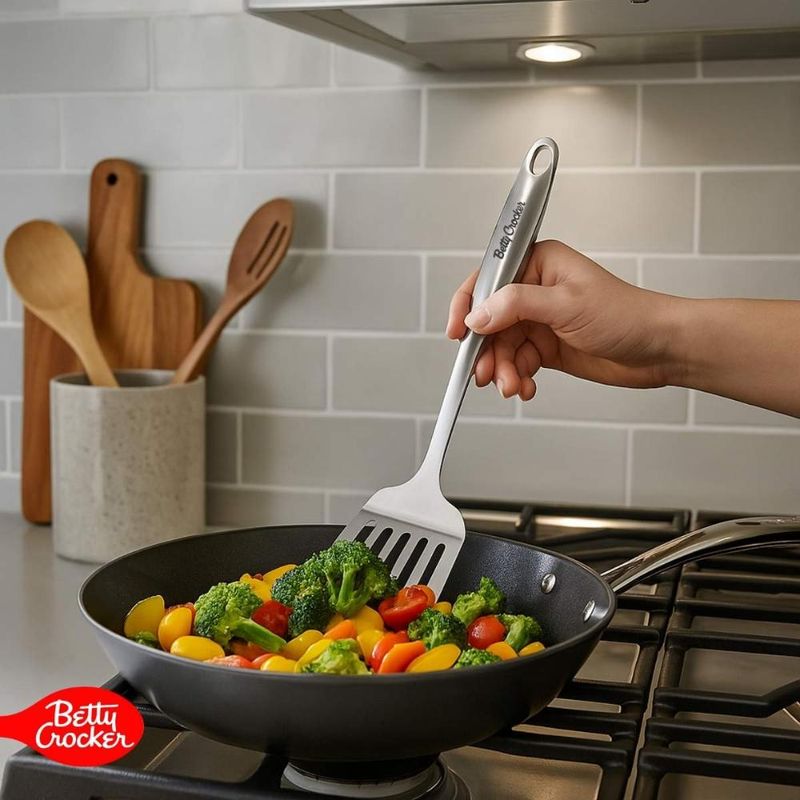 Durável e sofisticada, a Espátula Perfurada Premium Betty Crocker é um utensílio indispensável para a sua cozinha.