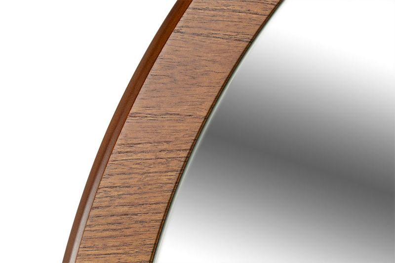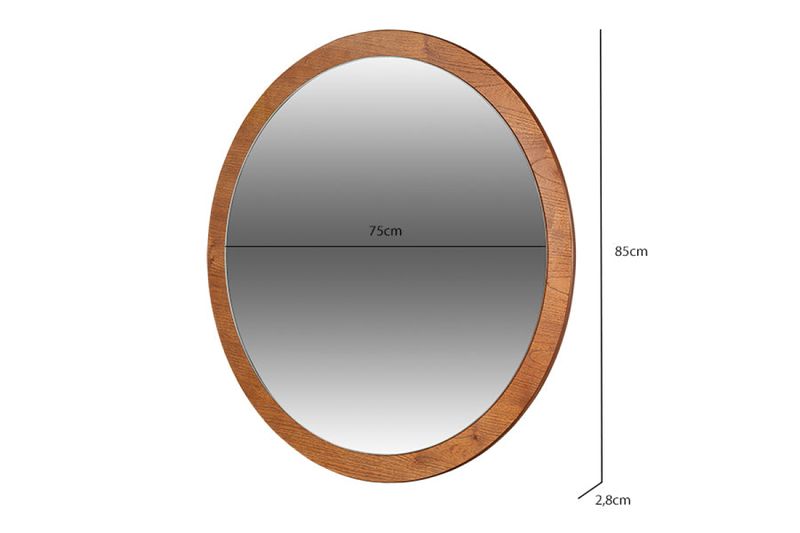 O Espelho Redondo Aro 85 cm é o elemento que faltava para valorizar seu espaço. O espelho de 75 cm de diâmetro é emoldurado por uma borda de MDF com lâmina de cinamomo, que adiciona 10 cm ao seu diâmetro total, criando um espelho grande com movimento e sofisticação.
