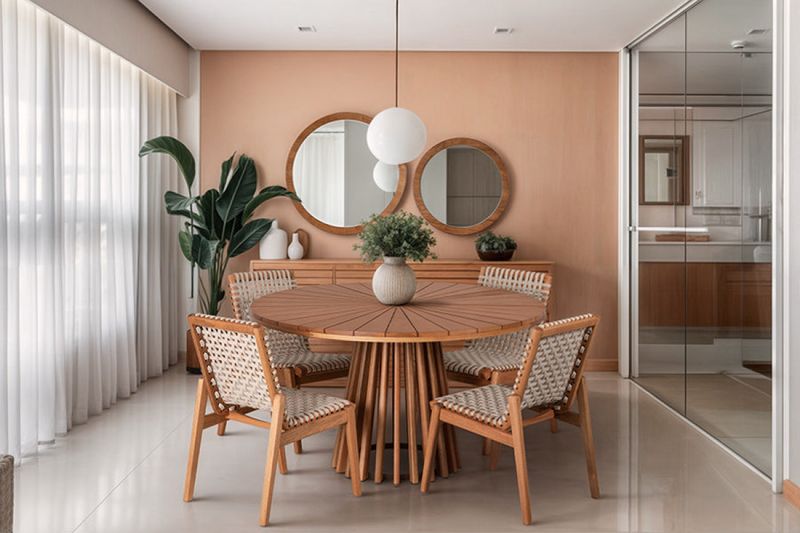 NESTE AMBIENTE: Mesa de Jantar Gourmet | Cadeira Trama Corda Rami | Espelho Aro 65cm