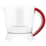 A jarra transparente ajuda a verificação da quantidade do suco preparada e ainda conta com graduação e sua capacidade é de 1,5 Litros. Possui porta-fio na base para melhor acondicionamento do produto.