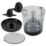 Acompanha 2 cones para extração, um para frutas maiores como laranja, e outro para frutas menores como limão. Sua jarra tem 1,5L de capacidade, permitindo preparar grandes quantidades de bebida de uma só vez.