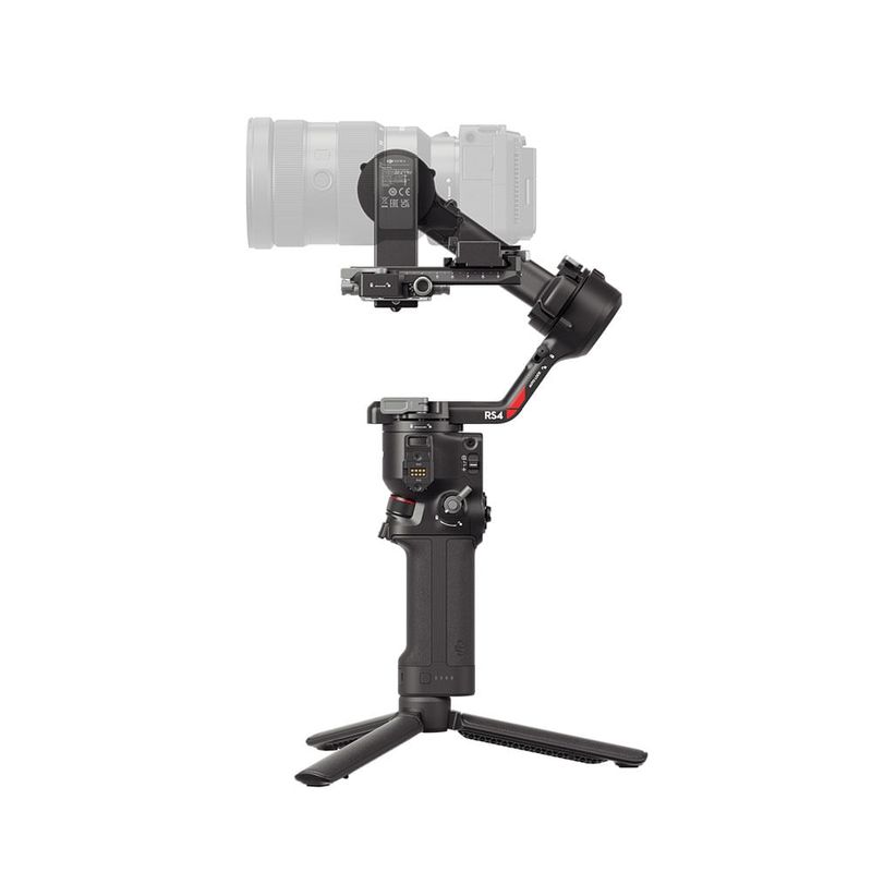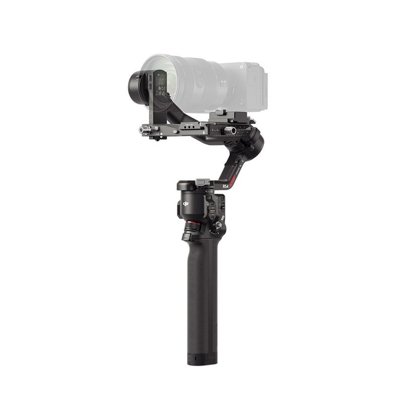 geração anterior, o eixo de inclinação do DJI RS 4 foi prolongado em 8,5 milímetros, oferecendo maior espaço de calibração. Isso permite a montagem de combinações convencionais de câmeras e lentes sem espelho, junto com acessórios