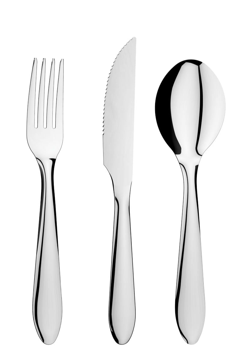 Na versão com 24 peças, o conjunto de talheres contém os utensílios básicos de uma mesa para seis pessoas: garfos e colheres de mesa, facas de churrasco e colheres de chá.