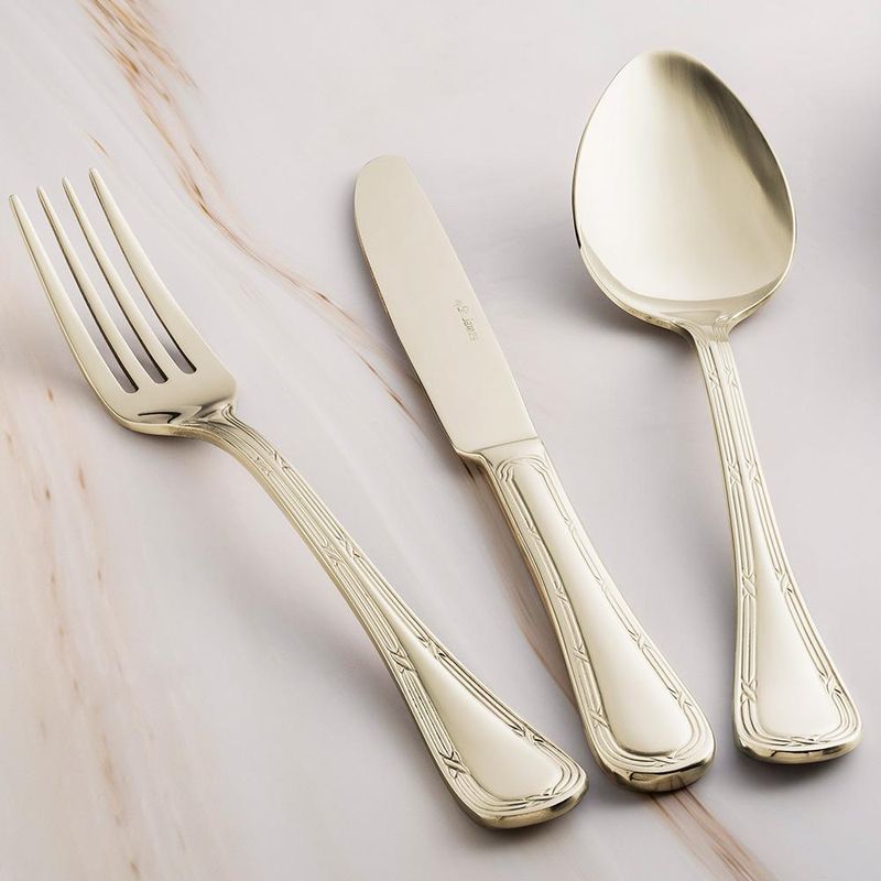 A principal característica deste faqueiro é o seu material, o aço inox com detalhe dourado, conhecido por sua resistência e longevidade. O aço inox utilizado pela Saint James garante que os talheres não manchem, não oxidem e mantenham seu brilho por muitos anos. Sua durabilidade é superior, resistindo a desgastes e ao tempo sem perder a beleza original. A facilidade de limpeza é outro ponto forte, permitindo que os talheres sejam lavados de maneira simples e eficiente.