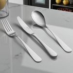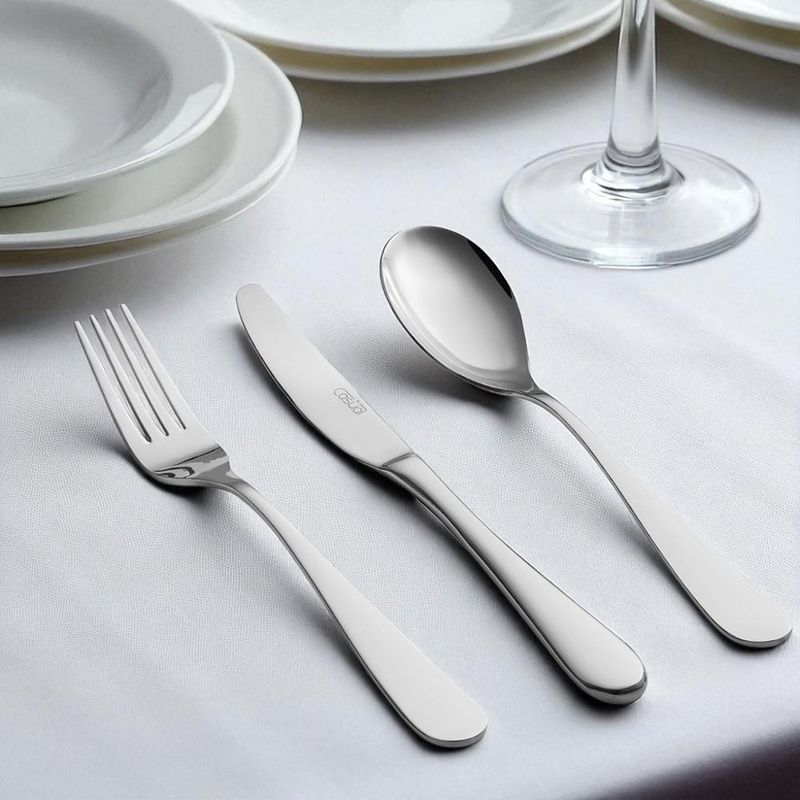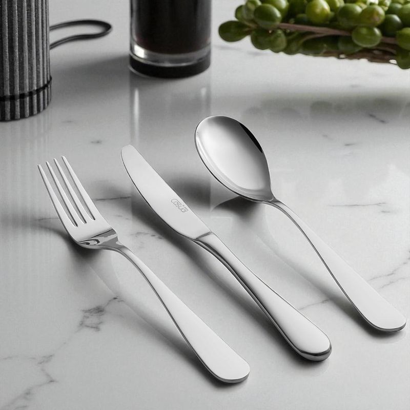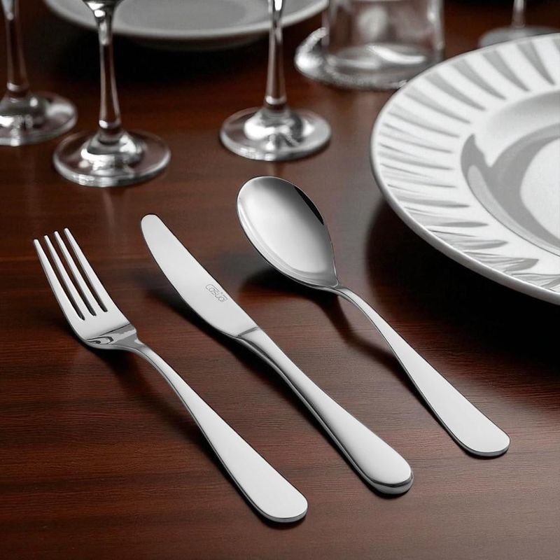A linha New Breeze se distingue por seu estilo minimalista e linhas suaves, que conferem uma estética moderna e limpa aos talheres. Cada peça é desenhada para um manuseio confortável, com peso e ergonomia ideais para uma experiência agradável ao se alimentar. As facas, com seu cabo inteiriço, possuem lâminas temperadas, garantindo um corte preciso e suave em diversos tipos de alimentos. O conjunto oferece todas as peças necessárias para uma mesa completa, combinando funcionalidade com um visual despojado e elegante.