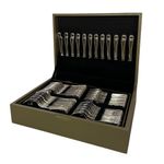 Eleve suas experiências gastronômicas a um novo patamar de requinte com o Faqueiro Saint James Lace, uma obra-prima de luxo e tradição, cuidadosamente guardada em um estojo elegante. Este conjunto serve até 12 pessoas, sendo a escolha sublime para quem busca sofisticação e funcionalidade sem igual em sua mesa.