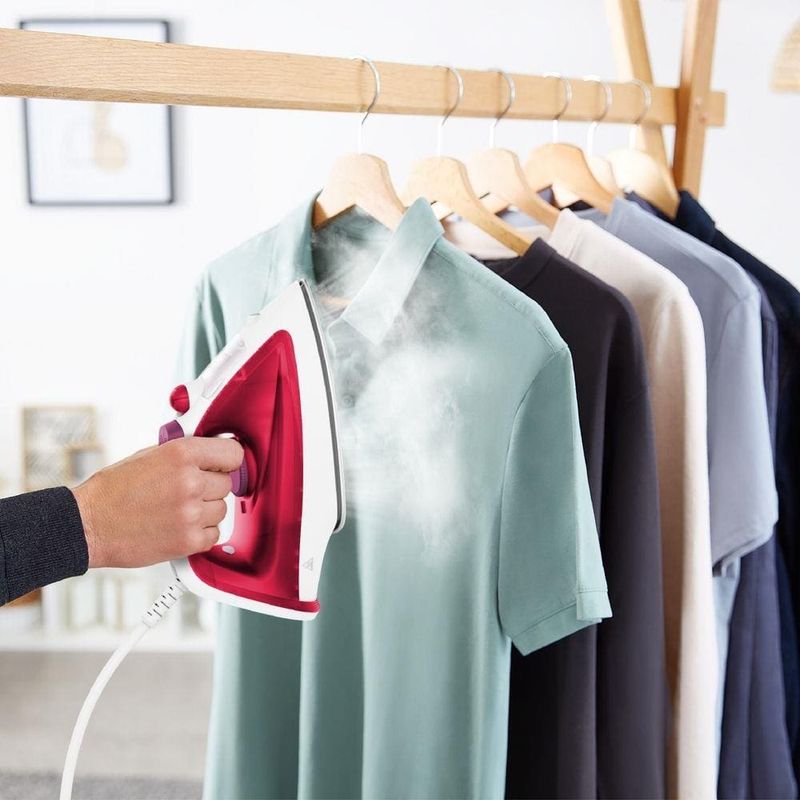 O modelo ainda oferece função spray, vapor vertical para desamassar roupas diretamente no cabide, borda salva-botões que protege os tecidos e luz indicadora que mostra quando o ferro está pronto para uso.
