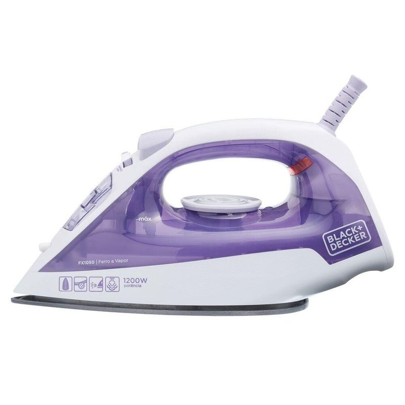 Com um design nas cores branco e roxo, o Ferro a Vapor Black+Decker FX1050 combina estética e funcionalidade, tornando-se um aliado indispensável na sua rotina.