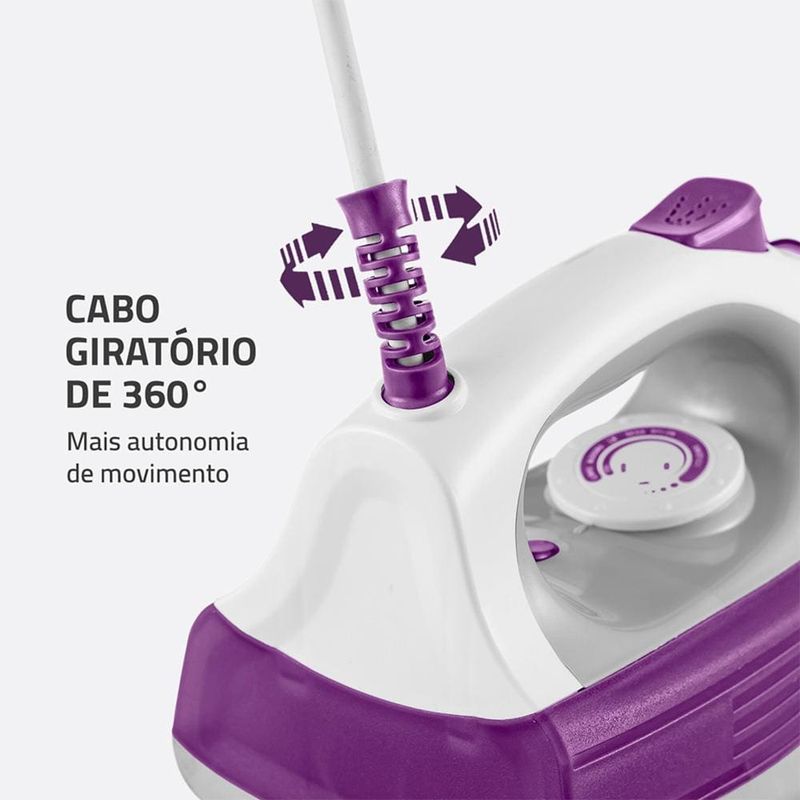 O cabo giratório 360° proporciona liberdade de movimentos, enquanto o seletor de temperatura e o LED luminoso garantem controle preciso para cada tipo de tecido.