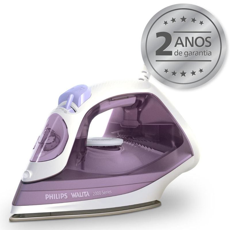 Ferro de Passar a Vapor Philips Walita Série 2000 DST2020 – Roupas livre de Bactérias e bem alinhadas! . O Ferro de Passar a Vapor Philips Walita Série 2000 DST2020 foi desenvolvido para deixar suas roupas impecáveis e higienizadas de forma rápida e prática. Potência Com 1400W (110V) e 2000W(220V) de potência, ele aquece rapidamente e proporciona vapor contínuo para remover até os vincos mais resistentes. 4 Configurações de Vapor Com base em cerâmica, desliza suavemente sobre qualquer tipo de tecido sem grudar, garantindo mais agilidade no cuidado com suas roupas. Possui 4 configurações de vapor, spray frontal e a função de vapor vertical, ideal para desamassar roupas penduradas. Calc Clean Conta ainda com tecnologia antigotejamento e a função Calc Clean, que facilita a limpeza interna e prolonga a vida útil do aparelho. Além disso, este ferro mata 99,9% das bactérias, garantindo roupas mais higienizadas e seguras.Reservatório Com reservatório de 250ml, cabo longo de 1,9m e peso leve de apenas 986g, oferece praticidade e conforto no uso diário. É o aliado perfeito para quem busca eficiência, segurança e performance na hora de passar roupas.Descubra mais produtos com a inovação e tecnologia Philips Walita!