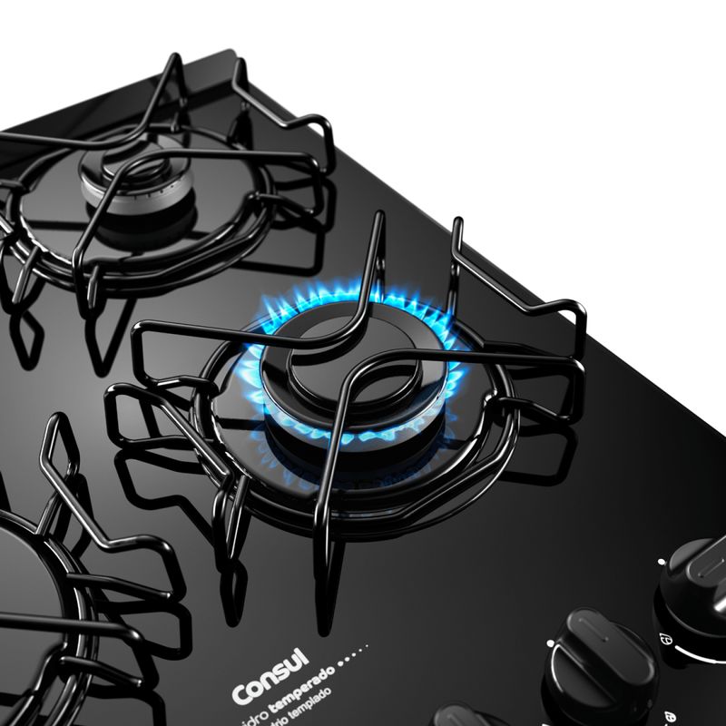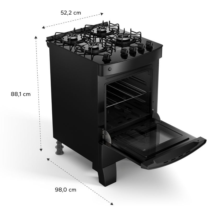 O novo fogão 4 bocas combina praticidade e design. A mesa de vidro temperado é moderna e fácil de limpar. Com forno de 58L – o maior do segmento¹ – você tem mais espaço para preparar suas receitas, além de ter chamas bem distribuídas que garantem assados mais uniformes. As grades são resistentes, e oferecem mais firmeza mesmo com panelas pesadas. Os pés elevados facilitam a limpeza do chão, sem precisar mover o fogão.