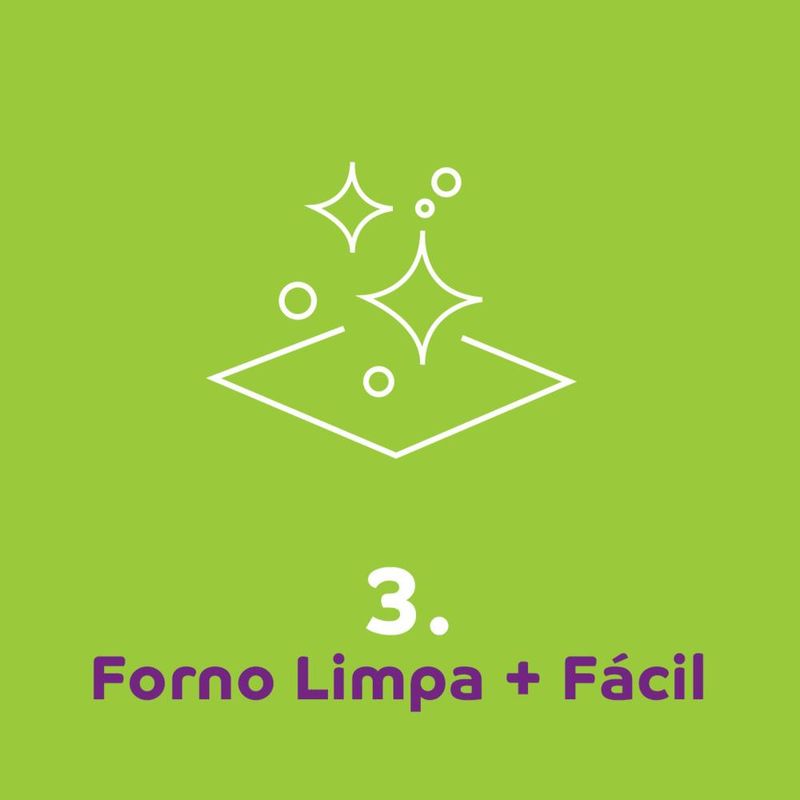 As paredes do forno têm revestimento esmaltado para uma limpeza sem estresse. Na hora de limpar, você pode usar só um paninho molhado com água morna ou uma esponja macia com detergente neutro.