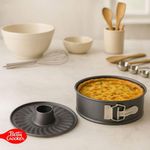 A forma conta com trava em aço inoxidável e 2 fundos removíveis, que facilitam o desenforme e garantem resultados impecáveis.